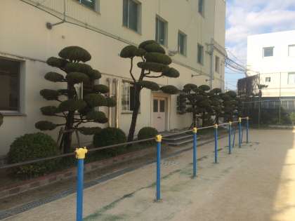 西三国小学校には、たくさんのカイヅカイブキが植えられています。剪定もなかなか難しく、丸くきれいに刈らなければならないのですが、Iさんが頑張ってくれています。