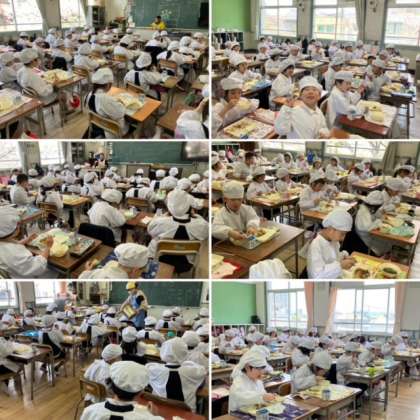 いつも元気でにぎやかな2年生の子どもたちですが、美味しい給食を黙ってモリモリ食べています。