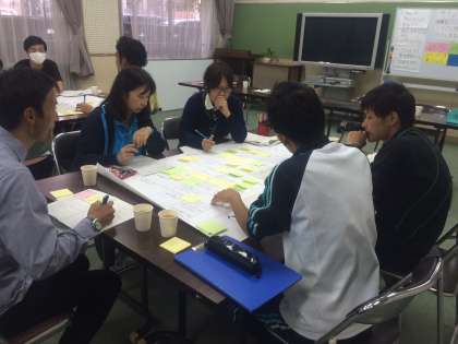 授業の後全教員で討議会です。よかったところ、課題をみんなで明らかにしました。教育センターのI先生から、今回もきめ細かい的確な指導助言をいただきました。明日からの授業に活かしていきたいと思います。