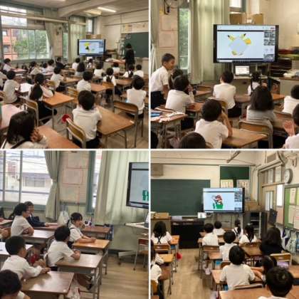 アンパンマン、ピカチュウ、マリオなど、子どもたちの好きなキャラクターがたくさん登場して、教室は大盛り上がりでした。