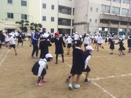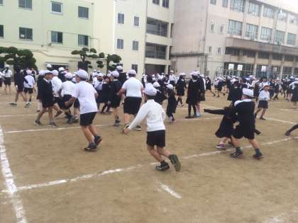 今朝は、鬼ごっこをしました。少し手狭な感じもしましたが、怪我もなく楽しくできました。