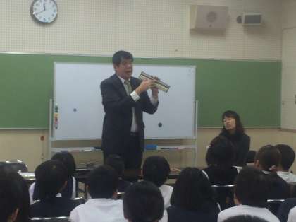 3.4時間目、全盲のHさんに来ていただきました。ユーモアを交えながら、分かりやすく子ども達に話をしてくださいました。Hさんは、生まれながら目が見えません。5歳ころだけは、ほんのわずかに色が感じられたので、もし、今目が見えたら覚えている色が記憶通り本当か確かめたいとおっしゃっていました。また、バリアフリーというけれど、段差がないとかえってどこからが別の部屋なのか分からない、とか、サプライズも時には戸惑ってしまうことが多いなど、意外なことに困り感を持っておられることが分かりました。「分からないから、分かろうとする、知ろうとする」ことの大切さを改めて感じました。