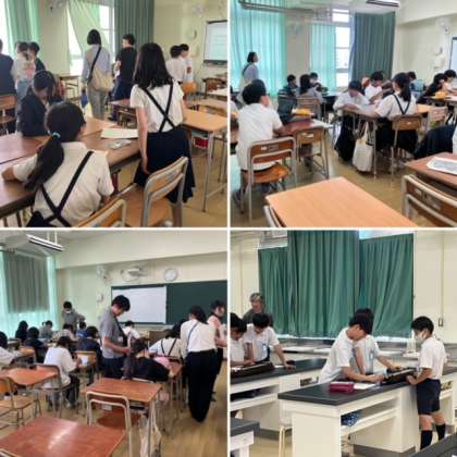6年生が三国中学校で行われた三国オープンスクールに参加しました。中学校で一緒になる三国小学校と新高小学校の子どもたちとともに、三国中学校の授業を体験しました。