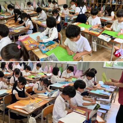 絵をかいていると、楽しかった遠足の思い出がよみがえってくるようです。