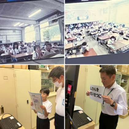今日の朝の時間は、オンラインで全校朝会を行いました。