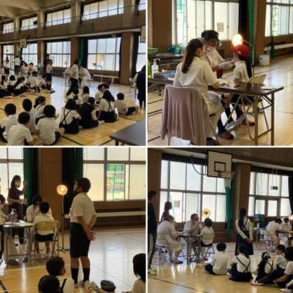 今日は歯科検診です。講堂でみんな静かに順番を待っています。虫歯が見つかった人は早めに受診してくださいね。