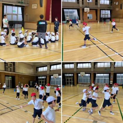 いろいろなバリエーションの「おにごっこ」や「だるまさんがころんだ」など、子どもたちが遊んで楽しみながら体力をつける運動を教えていただきました。