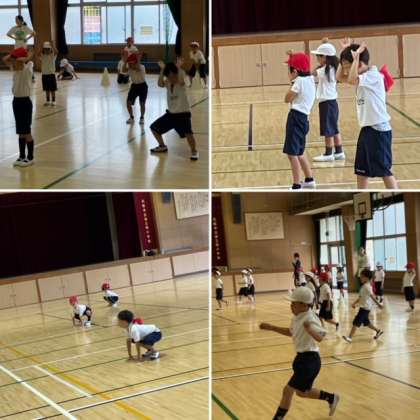 走ったり、跳ねたり、ウサギになったり、カエルになったり、楽しく体育の学習ができました。ありがとうございました。