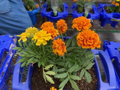 3年生で地域とのふれあい活動を行いました。3年生では、地域の花苗ボランティアの皆さん、公園事務所の皆さんと一緒にマリーゴールドを種から育てています。