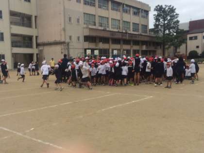 身近な国に親しむ週間の児童集会は、身近な国に関するクイズでした。「ロシア語の食べ物は次のうちのどれ? オクラ、イクラ、ゼリー、チーズ」4つの選択肢から選んで場所を移動するクイズどす。みんなは、相談しながら移動です。ちなみにこの答えは、イクラでした。その他、中国、韓国、日本などからも問題が出ました。食べ物、遊びなどは、一番興味をもって親しむことができますね。