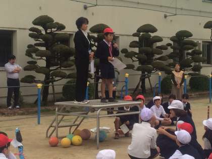2つのレスリング大会で優勝した4年生のA君に表彰状をわたしました。1週間に4日練習しているそうで大変ですが、頑張ったらできることを話してくれました。おめでとう。