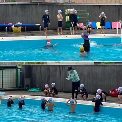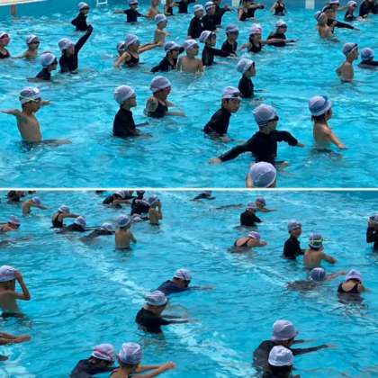 今日は蒸し暑いので、プールの中は気持ちがよく、みんなとても楽しそうです。