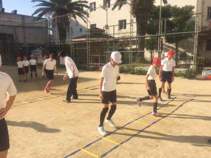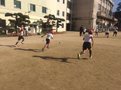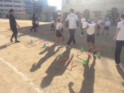 区役所の出前授業で、「走り方」を教えていただきました。新大阪にある「大阪ハイテクノロジー専門学校」の先生と学生さんに来ていただきました。昨年度も出前授業を受けて、とてもわかりやすく、スポーツテストの結果も上がったことから今年もまたぜひにとお願いしました。子ども達が楽しみながら、45分間フルに体を動かして、速く走るためのポイントを学ぶことができました。