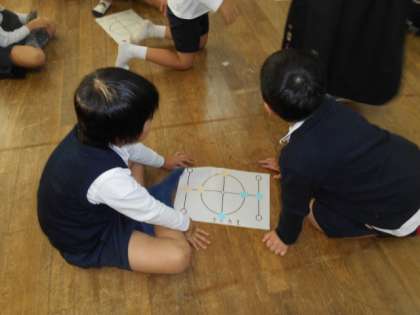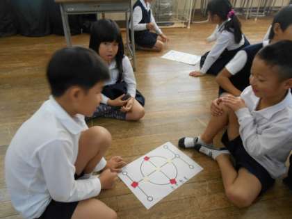最初は難しかったけど、みんな夢中で遊びました。「雨の日には、教室で遊ぼう」とゲーム盤の紙をうれしそうにカバンに入れて帰っていました。