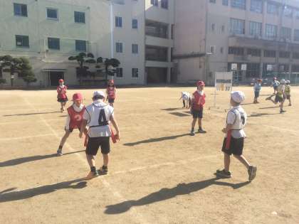 雨でできなかった体育の研究授業の公開を、金曜日におこないました。研究討議会で深めたことを生かしてめあての持たせ方や声かけ、ふりかえりなどを子どもの意欲がますように、ていねいに行いました。青空のもと、子ども達は大満足でした。