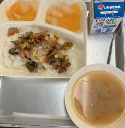 今日の給食は優秀賞に輝いた平野西小学校の給食委員会の子どもたちが考えた献立だそうです。