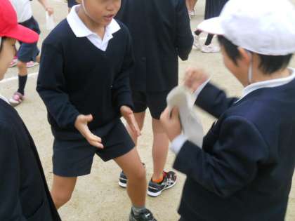 26日の児童集会は、カード集めじゃんけんです。一人1枚ずつカードを持ち、じゃんけんをします。勝ったら相手のカードをもらいます。たてわりグループで、たくさんカードを集めたチームが勝ちとなります。チームを超えて、いろんな人とじゃんけんを楽しみました。勝っても負けても楽しい時間となりました。