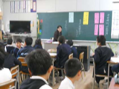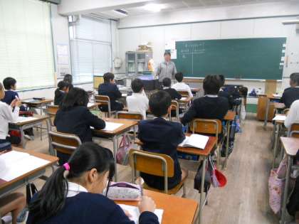 5時間目、6年生が、中学校の先生に国語と理科の勉強を教えていただきました。1組は理科で「ものの溶け方」2組は国語で「竹取物語」の学習です。導入などもくふうしていただき、「難しいと思っていたけど、楽しかった。」「中学校へ行って勉強するのが待ち遠しい。」などの感想がありました。三国中学校の先生、ありがとうございました。