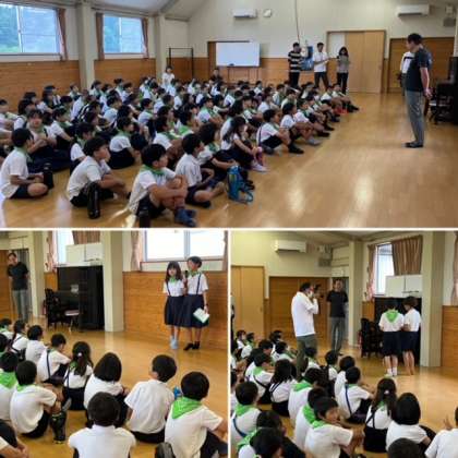 3日間お世話になる宿舎の方への子どもたちからのあいさつと宿舎の方からのお話がありました。