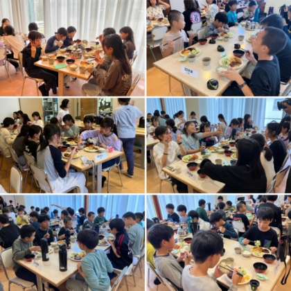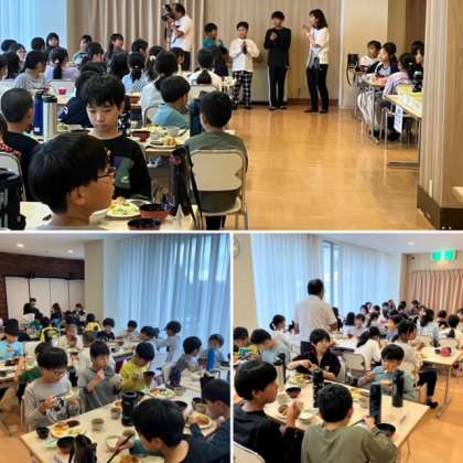 たくさん活動をして、お腹を空かせた子どもたち、とてもよく食べています。ご飯のおかわりを何回もしている子どもたちがたくさんいました。みんな幸せそうに楽しく食べています。