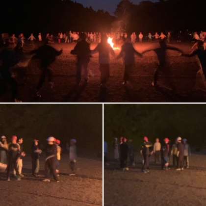 ファイヤーリーダーの子どもたちの進行で、「猛獣狩りゲーム」「マイムマイム」などをして、とても盛り上がりました。ファイヤーリーダーの子どもたちは、みんなを楽しませようと、林間学習に行く前から練習をして、がんばっていたようです。