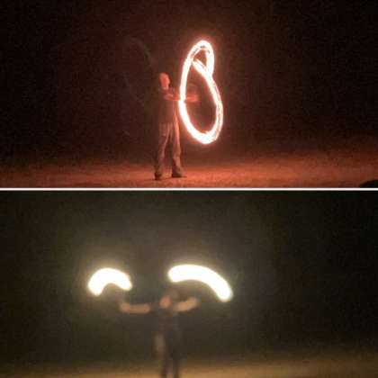 最後に宿の方にファイヤーパフォーマンスを見せていただき、その素晴らしさに、みんなで感動しました。