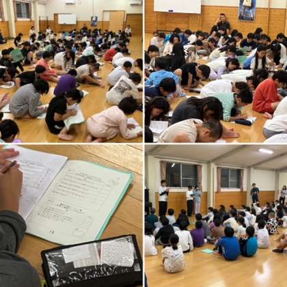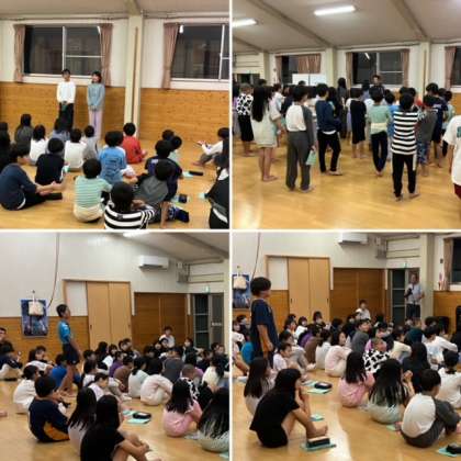 ? 一日の締めくくりの夜の集いです。子どもたちの進行で、今日楽しかったことなどを発表していきました。