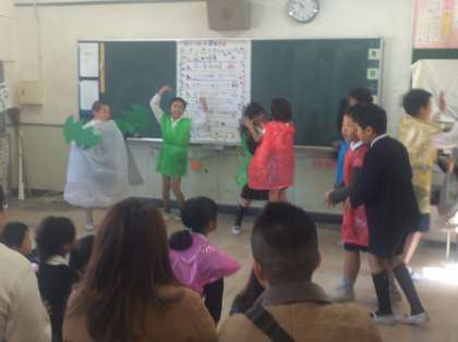 4年生は、それぞれ劇を中心に発表です。英語劇の「大きなかぶ」は、英語の先生にも発音の指導をお願いしたそうです。