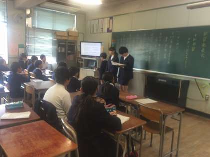 6年生は、社会科、総合的な学習で平和について調べ、考え、まとめたことをグループごとに発表しました。iPadも使いこなしています。