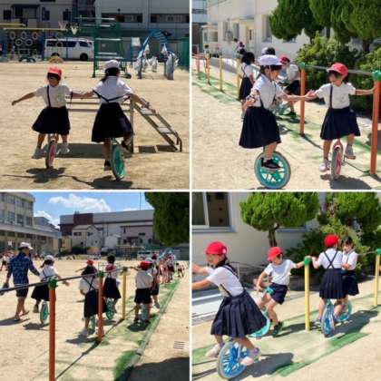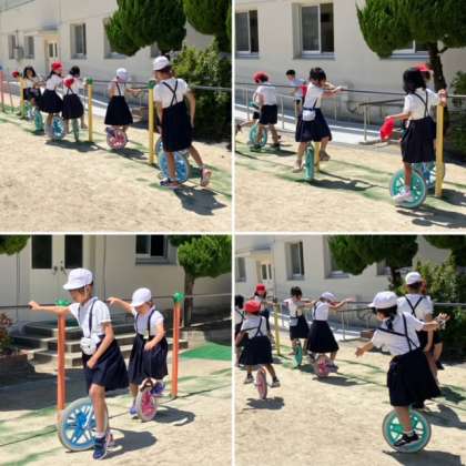 子どもたちは、何でも上達するのが早いので、一輪車に乗ってみんなで走り回っている日も近いことでしょう。