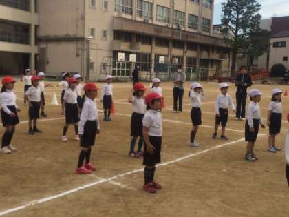 5時間目、1年2組で「ゲーム「すりぬけおにごっこ」の研究授業がありました。並び方、準備運動、自分のめあてやふりかえりを記入するカード配りなど、それまでに学習してきたことがきちんと積み上げられていることを感じる授業でした。どの子もキビキビ動いています。