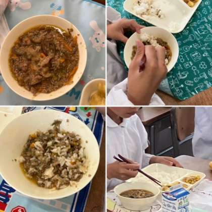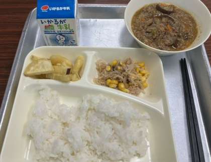 「マーボーなす」と聞いて、子どもたちの反応はいまいちでしたが、給食の時間に見に行くと、子どもたちからは「マーボーなす美味しい!」と好評です。なすびが苦手な子も食べやすく調理されています。