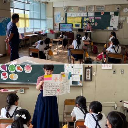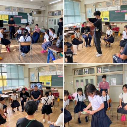 その後、韓国・朝鮮版のフルーツバスケットをしました。スイカはスバク、ブドウはポド、イチゴはトルギ、モモはボクスンアです。先生たちも入ってゲームをして、大盛り上がりでした。