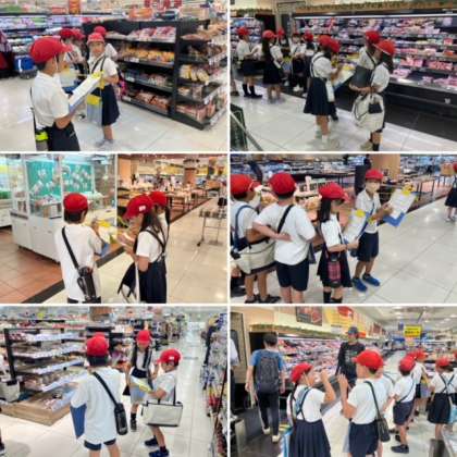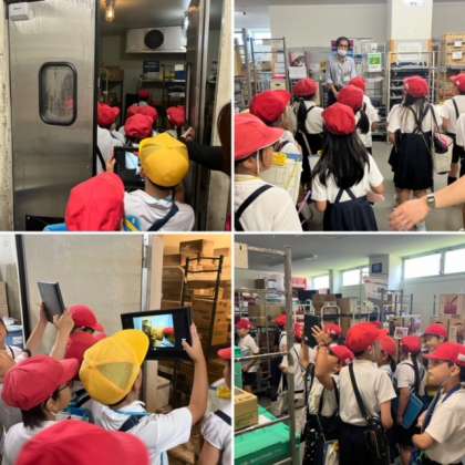 そして、店内を班でまわり、写真を撮ったり、気づいたことをメモしたりしました。そして、普段入ることのできないバックヤードにも入らせていただきました。冷蔵室や冷凍室に、子どもたちは感動していました。