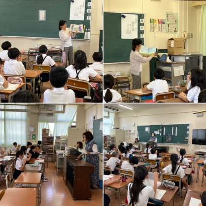 今日の朝は2年生、4年生、6年生のお話会です。いつものように、読み聞かせボランティアの「ほうせんか」さんに、絵本の読み聞かせをしていただきました。
