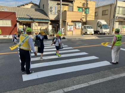 見守り隊の皆さんは、交通安全のタスキをかけて、子どもたちの見守り活動をしていただいています。日々子どもたちの安心・安全のため見守り活動をしてくださり、誠にありがとうございます。