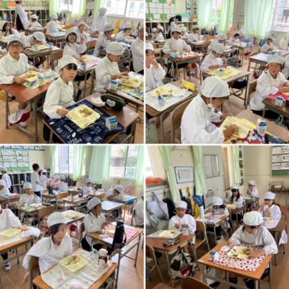 鶏肉と卵で親子丼、鶏肉以外の牛肉や豚肉などと卵で他人丼です。3年生の子どもたちに聞いてみると、先生から教えてもらったと言っていました。豆知識が増えましたね。玄関のモニターにも書いてあるので、見ておいてくださいね。他人丼大盛り、他人丼つゆだくなど、みんなよく食べていました。