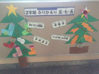 児童会のメンバーが、2学期の行事や取り組みをふりかえって俳句を作りました。玄関に掲示しています。