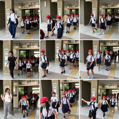 3年生が遠足に出発しました。行き先は海遊館と天保山公園です。