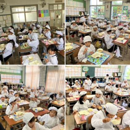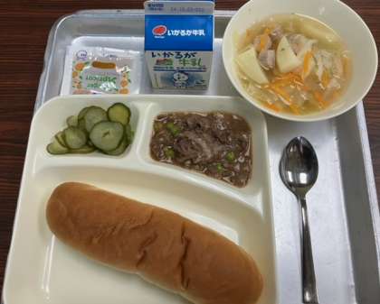 2年生の子どもたちは、お肉をおかわりをして、たくさん食べていました。みんなよく食べていたので、昼からも元気モリモリですね。