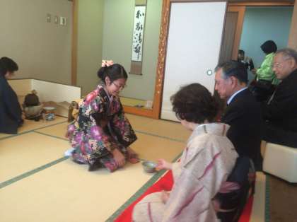 お茶の教室に通っている子ども達もお客様を迎えてお茶を点てています。卒業しても熱心に通っているそうで、まさに"生涯学習"ですね。結構なお手前でした^_^