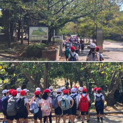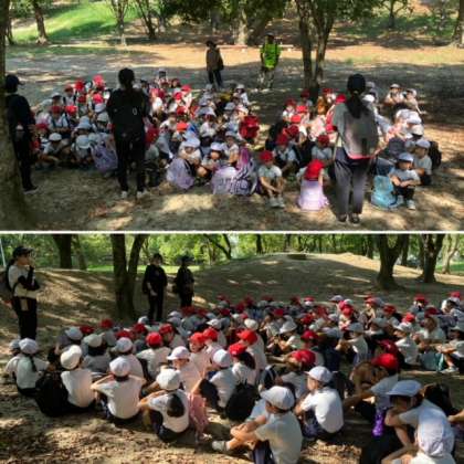 千里中央駅から歩いて、千里中央公園に到着です。広い公園で、滑り台のあるところはもう少し先ですが、ここでお茶とトイレ休憩です。