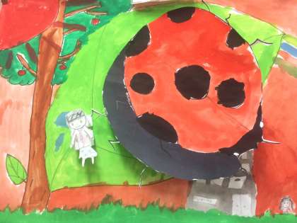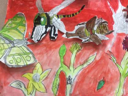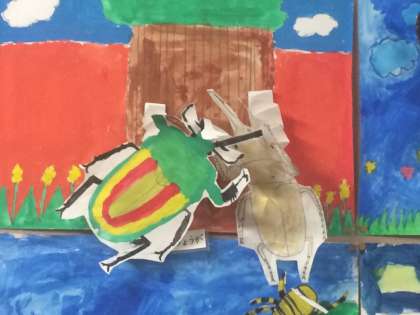 今にも飛び出してきそうな虫たちにビックリ!!一人一人がストーリーを作って想像しながら仕上げました。迫力がありますよ!
