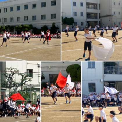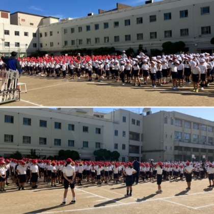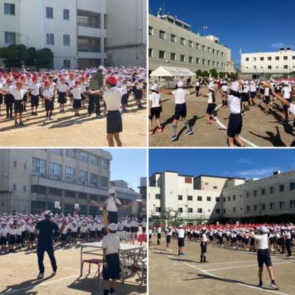 最後に応援合戦の練習をしました。応援団の子どもたちの元気な声と気合いの入った動きで、全校の子どもたちを巻き込んで応援が盛り上がりました。