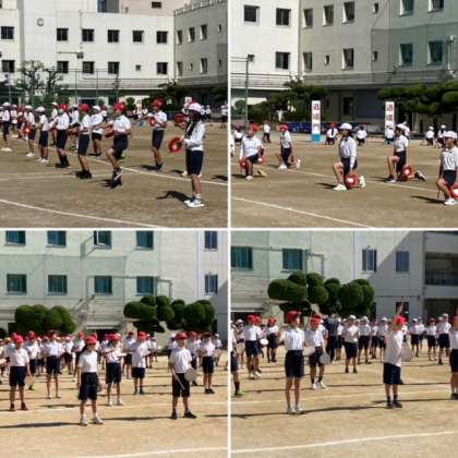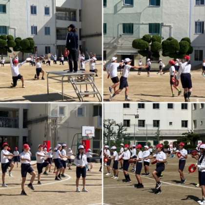 5年生の運動会の演技の練習です。5年生は沖縄の伝統芸能であるエイサーをします。