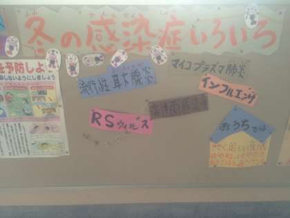 保健室の前にM先生が掲示してくださっています。冬の感染症、身体を鍛えてかからないようにしたいですね。