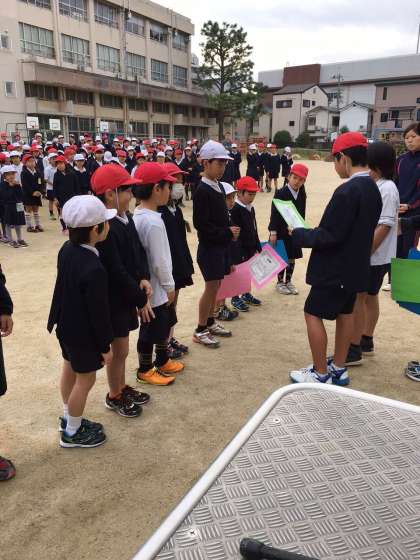 児童会が先日のドッジボール大会各学年の優勝チームに表彰状を渡しました。休み時間みんなで練習した成果です。応援団も一生懸命でした。これからも休み時間、みんなでいい汗をかいてほしいと思います。