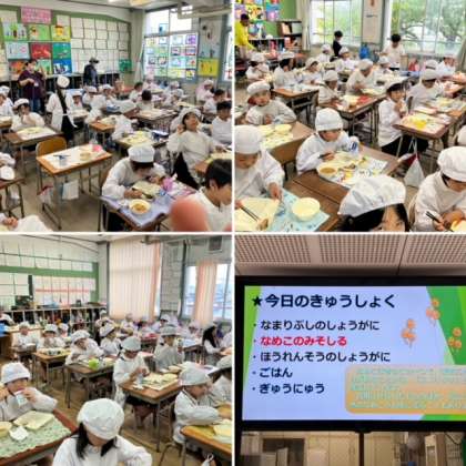 2年生の子どもたちは、「おさかなにホネはない?」と聞いていました。「なまりぶし」は骨を抜いて加工しているので子どもたちにも食べやすい食品です。かつおの旨みが凝縮されていて、美味しいですよ。しっかり食べれたかな?