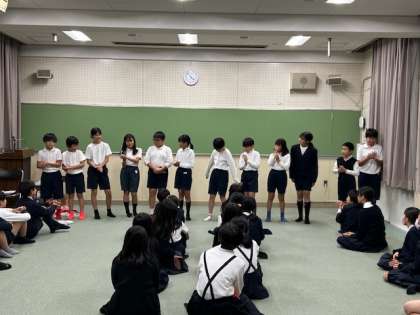 運動会で大活躍だった応援団の解団式を行いました。1人ずつ応援団をして感じたことを発表していきました。
