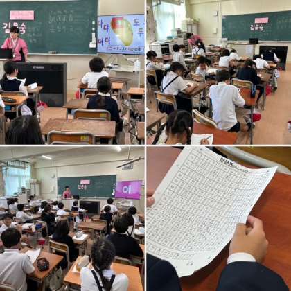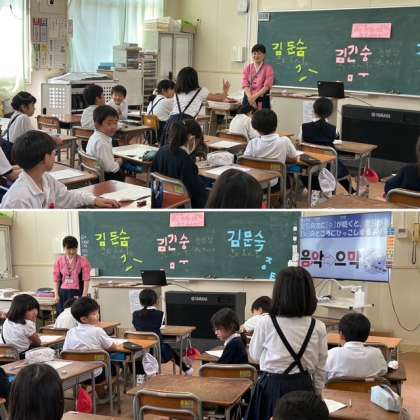 各学年で「韓国・朝鮮について知ろう」ということで、民族講師の先生から教えていただく「ソンセンニムタイム」行っています。今日は3年生で「韓国・朝鮮の文字を知ろう」というテーマで学習をしました。